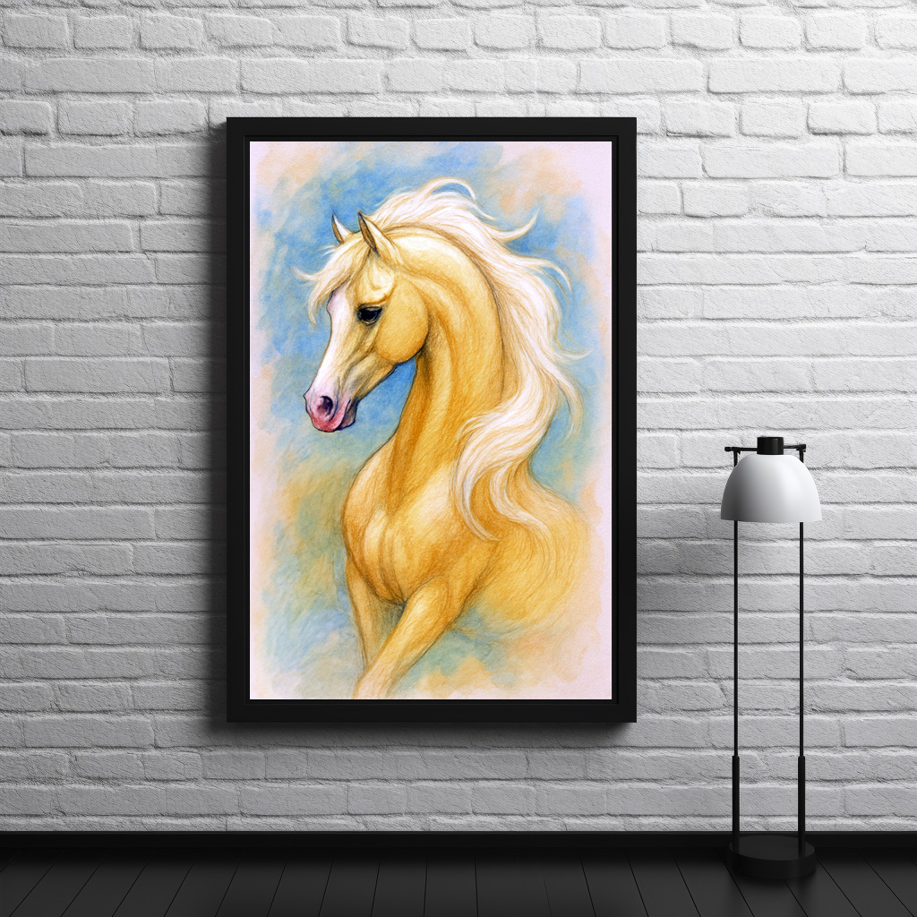 "Elegantes Palomino Pferd" by Kerstin Waurick Edles Pferd in Palomino Farbe im Aquarell Stil. Portrait. [raxxa_pgid_content pgid=”84″]