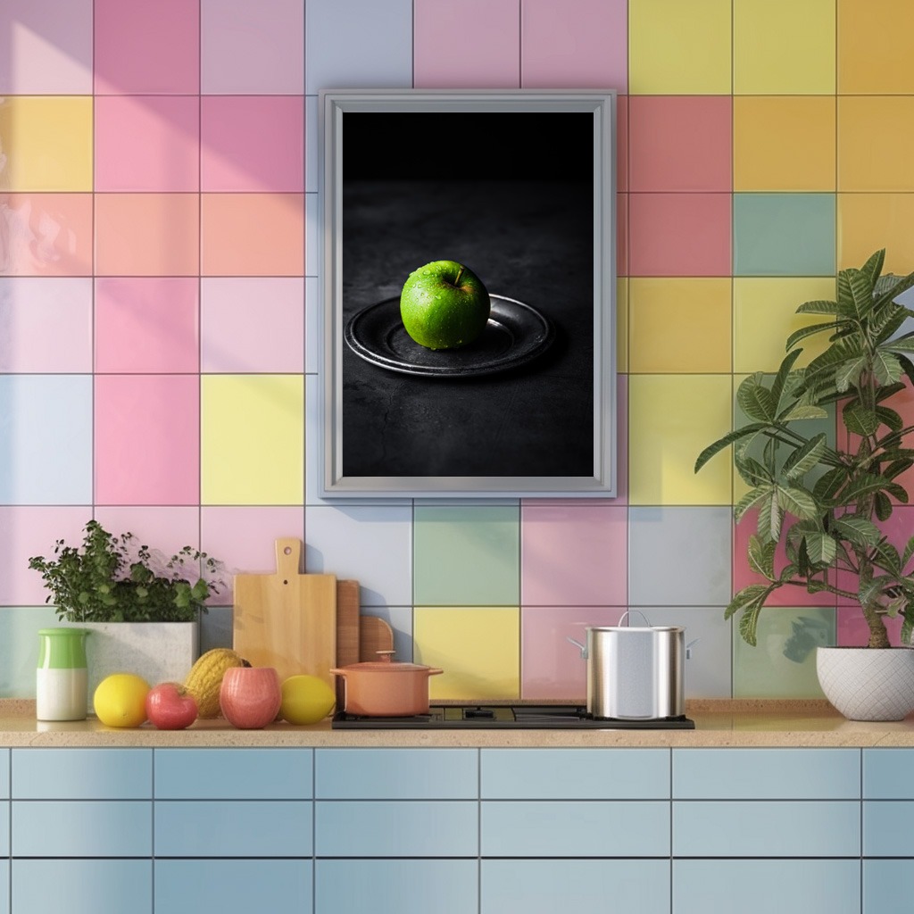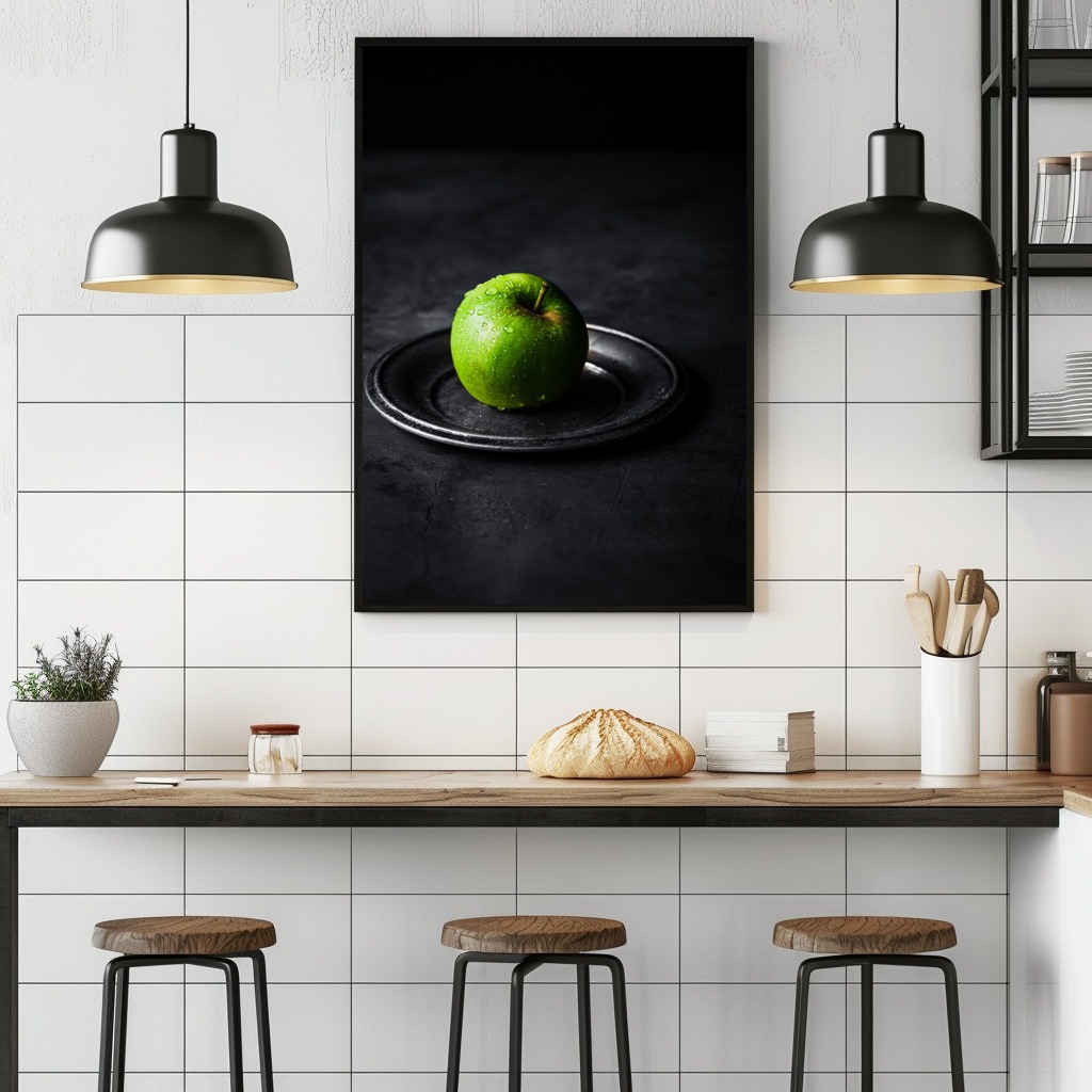 This dark and moody photo of a green apple is more than just a still life – its an invitation to escape into a world of mystery and intrigue. The muted tones and dramatic lighting create a sense of foreboding, evoking the feeling of a secrets waiting to be uncovered. As you gaze upon the apples emerald hue, you can almost imagine the stories it could tell- of hidden treasures, ancient wisdom, or whispered promises. Its not just a fruit – its a portal to the unknown, and owning this photograph is like having a piece of that mystique brought into your own home.