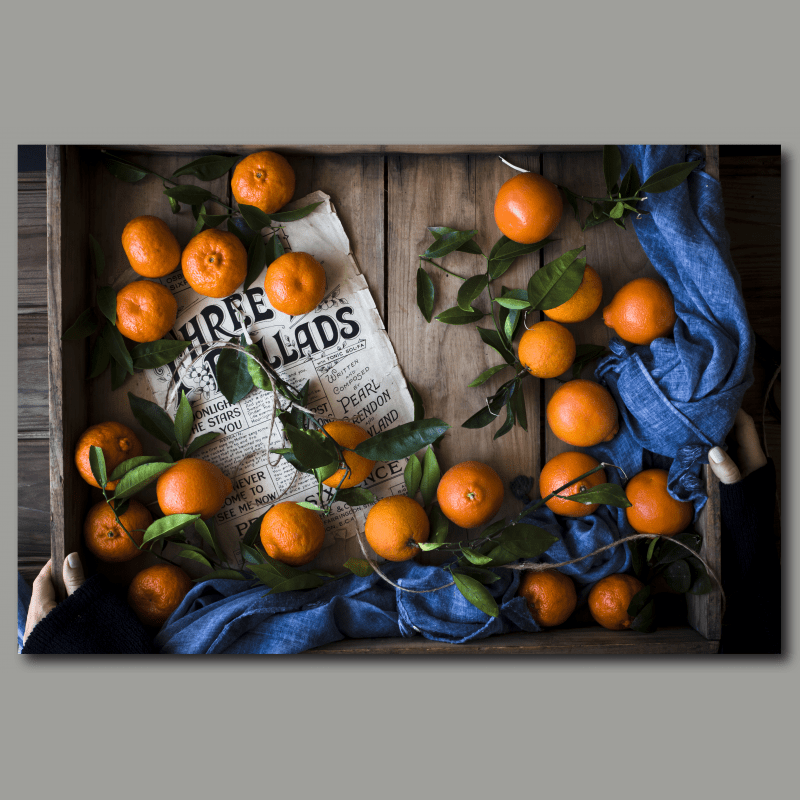 This moody photo of a box of oranges is a unique and captivating piece of art that will add a touch of elegance and sophistication to any room. The dramatic lighting and striking composition create a sense of mystery and allure, drawing the viewers eye to the fruit within. The oranges themselves appear almost otherworldly, as if theyre glowing with an inner light, inviting the viewer to reach out and touch their smooth, rounded surfaces. By purchasing this photograph, youll not only be acquiring a beautiful piece of art, but also a conversation starter that will spark interesting discussions about the intersection of reality and fantasy.