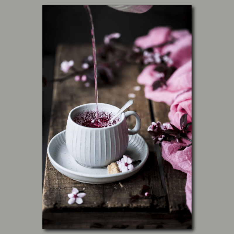 Cherry tea because its a unique and thoughtful way to bring a touch of warmth and serenity into your home. The vibrant red colour of the cherries will add a pop of color to any room, while the delicate tea leaves will transport you to a peaceful setting on a warm summer day. Plus, the soft, watercolour style of the painting will add an air of elegance and sophistication, making it a beautiful addition to any room.