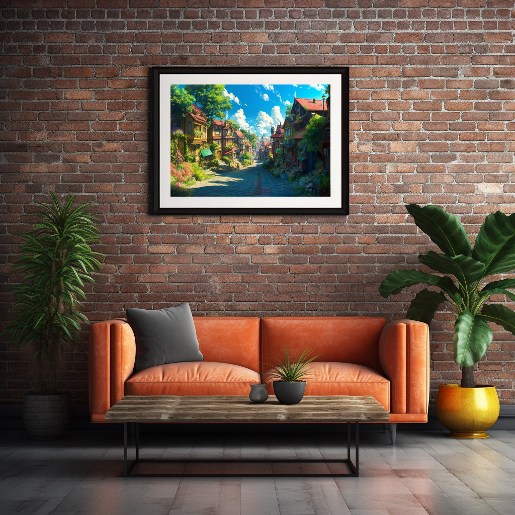 Poster: Weg durch ein Fantasy Dorf im Anime Stil