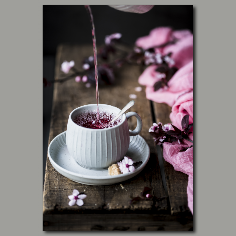 Cherry tea because its a unique and thoughtful way to bring a touch of warmth and serenity into your home. The vibrant red colour of the cherries will add a pop of color to any room, while the delicate tea leaves will transport you to a peaceful setting on a warm summer day. Plus, the soft, watercolour style of the painting will add an air of elegance and sophistication, making it a beautiful addition to any room.