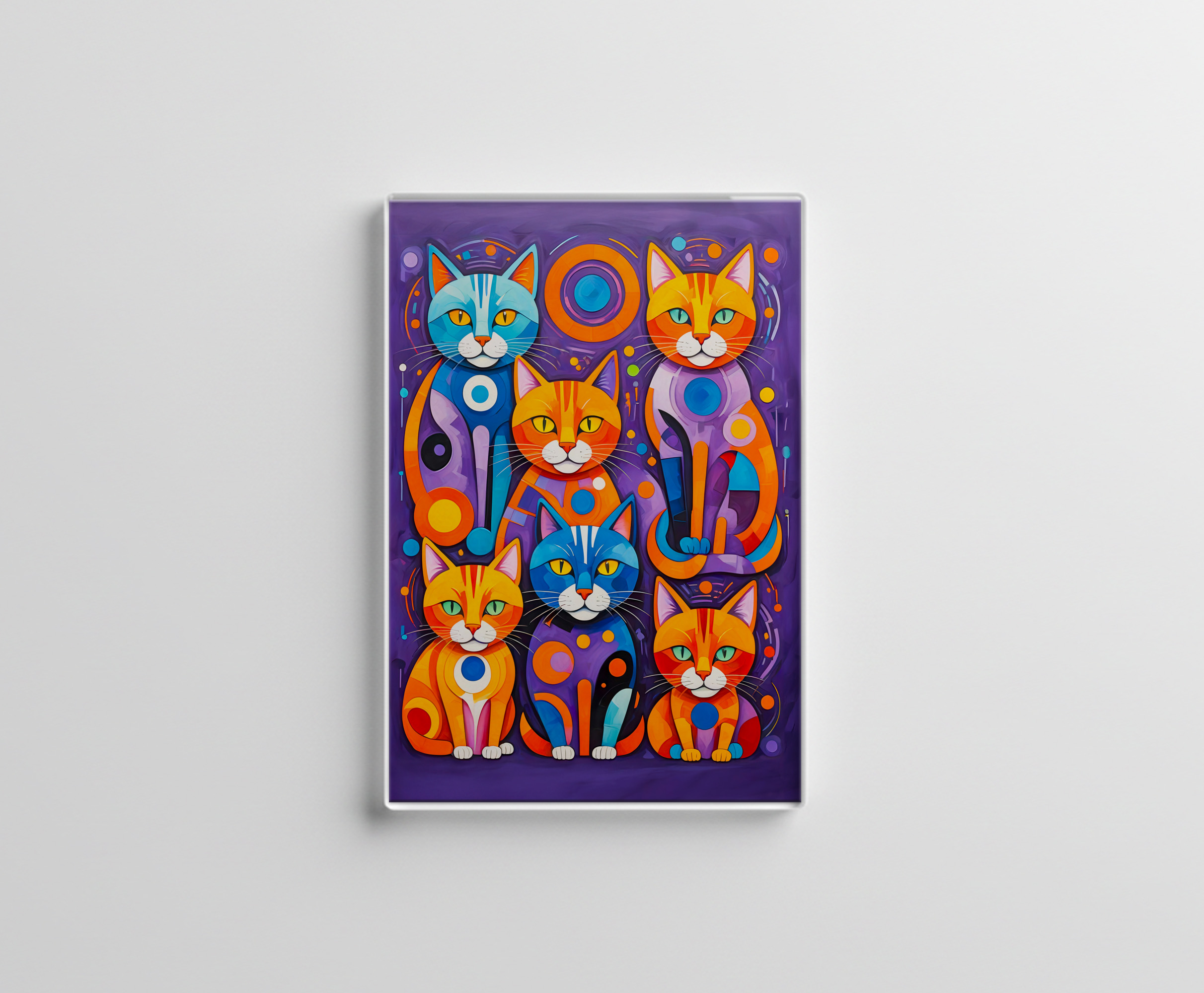 Colorful cubist cats artwork with bold geometric shapes and vivid colors.